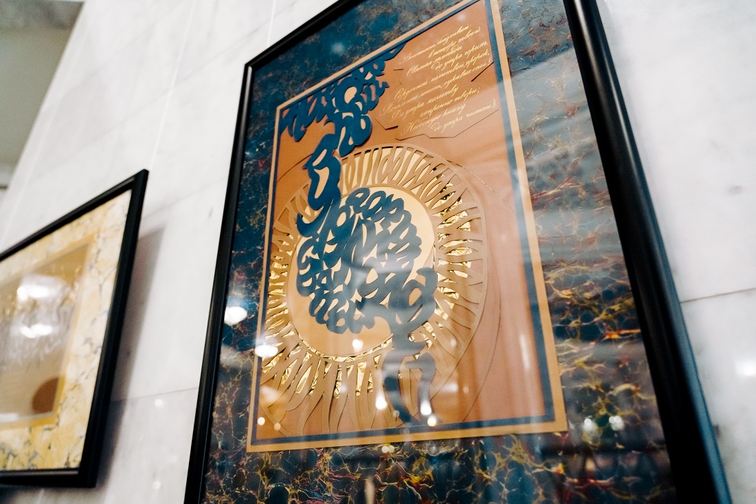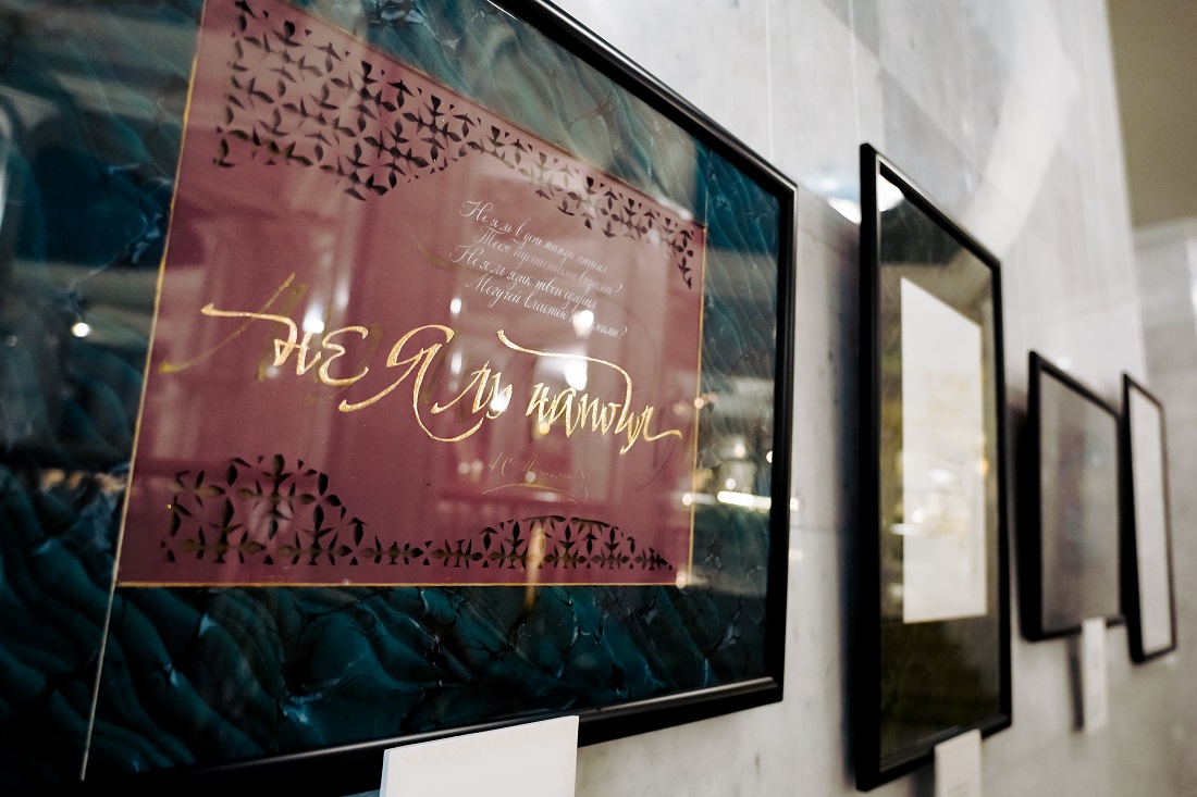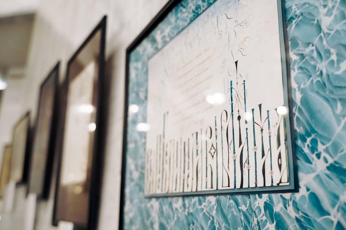 В основе выставки — 33 каллиграфические композиции. Специально для выставочного проекта 11 авторов Центра каллиграфии «От Аза до Ижицы» (Санкт-Петербург) из разных российских городов создали по 3 произведения с цитатами из «Подражаний Корану». Эти работы объединяет единый формат каллиграфического листа; способ начертания букв, который соответствует духу эпохи и лёгкости пушкинской поэзии; объёмные элементы, создающие многомерность, созвучную глубине текста Пушкина.