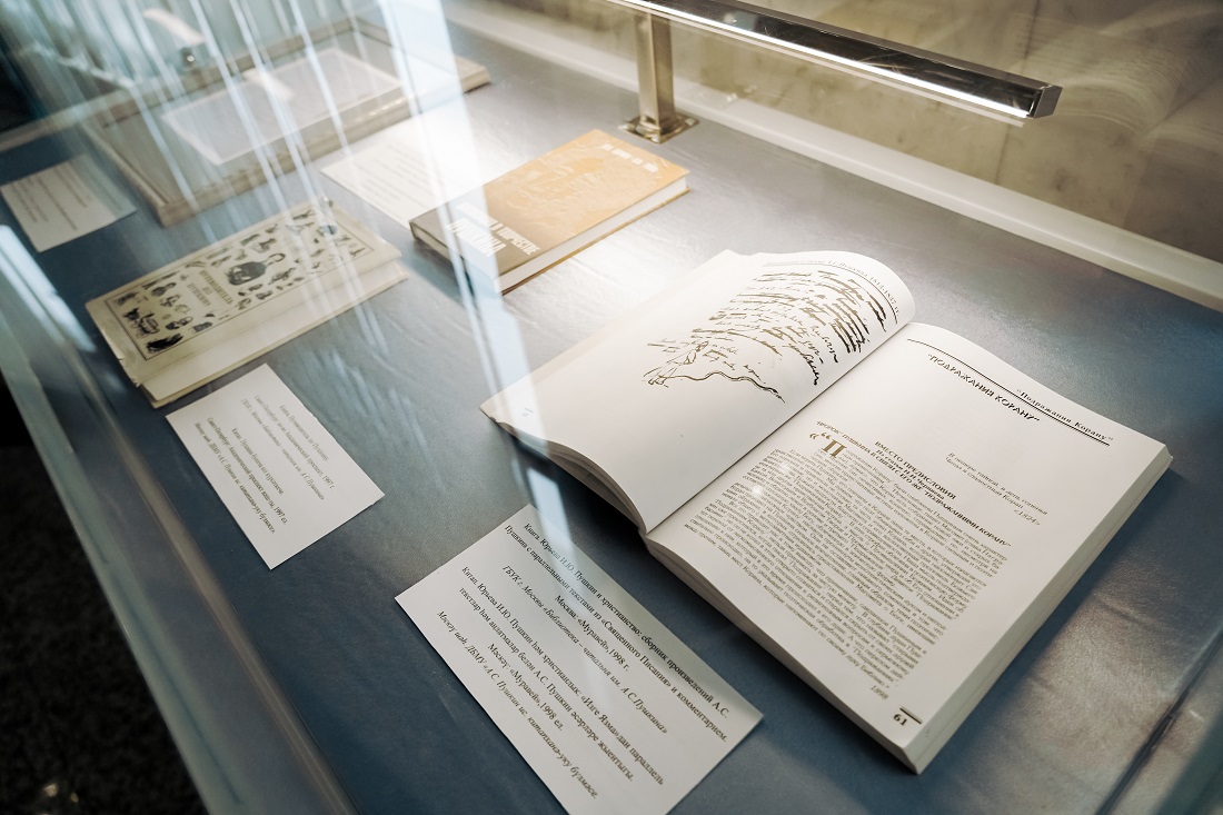 Редкие издания поэтического цикла XIX-XX веков и литературоведческие исследования восприятия исламского наследия в творчестве поэта представлены Библиотекой-читальней им. А. С. Пушкина (Москва). При содействии Библиотеки на выставке демонстрируются копии трёх автографов А.С. Пушкина с фрагментами «Подражаний Корану» из Института русской литературы РАН (Пушкинский дом).